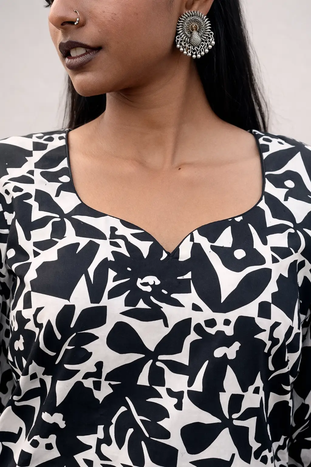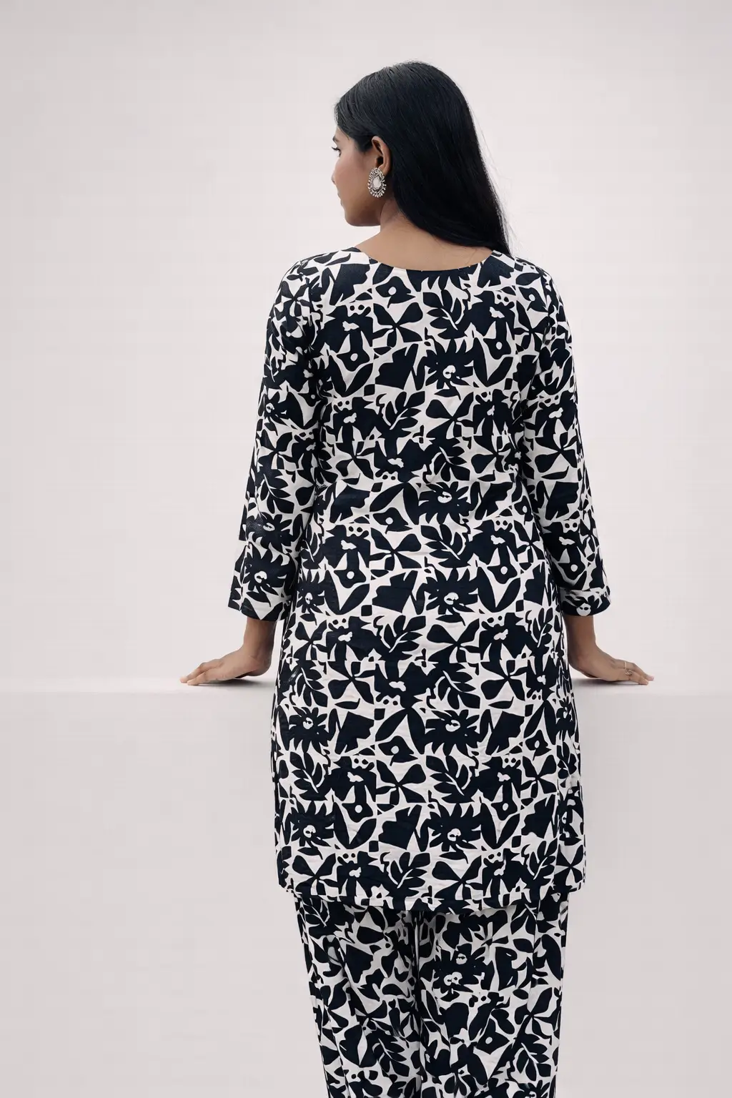 Slip into this timeless black-and-white ensemble and let it whisper back,